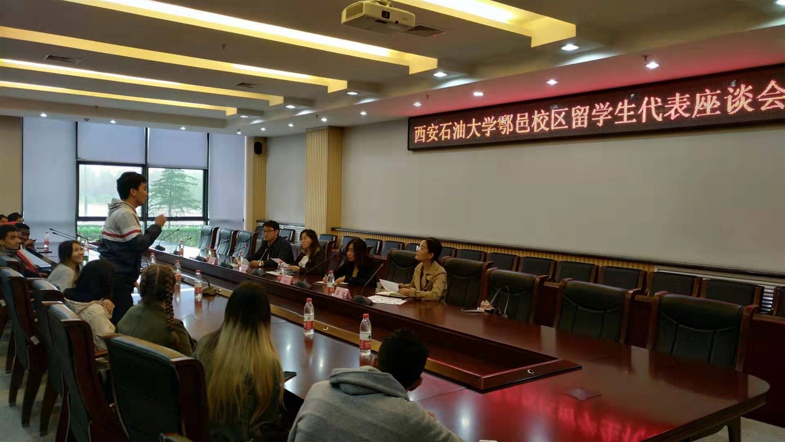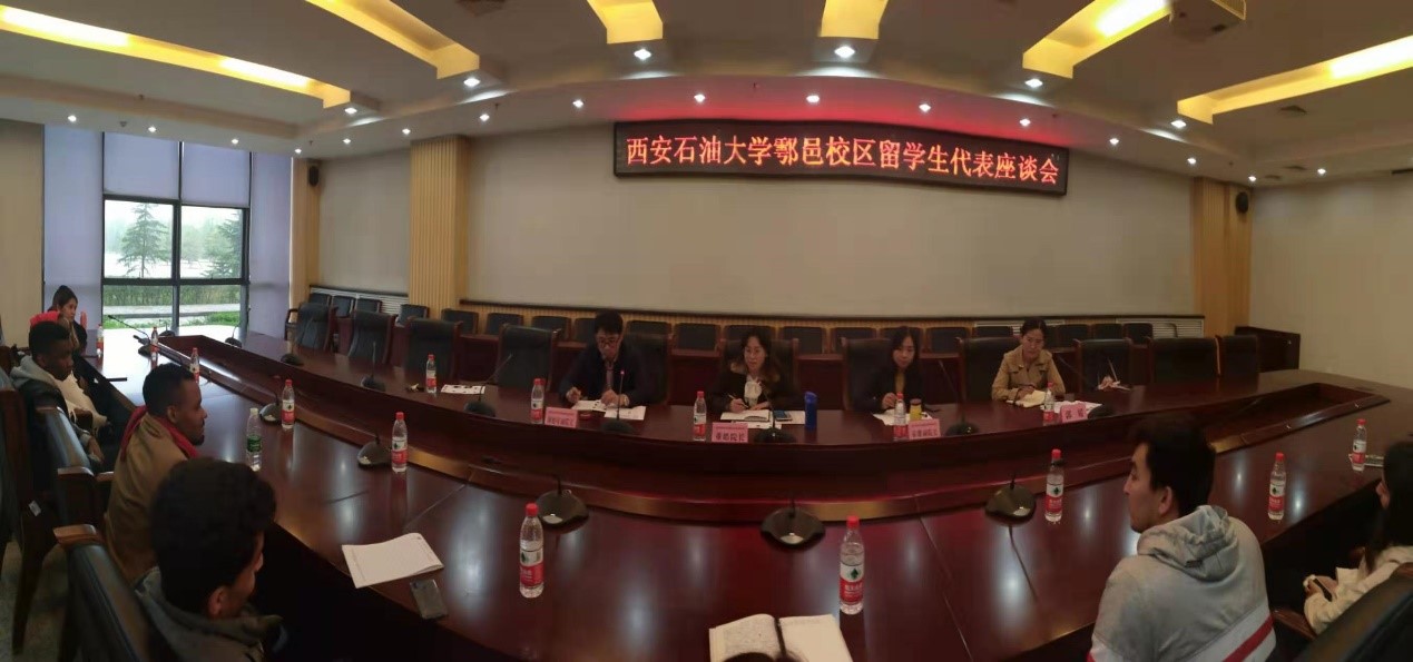 10月21日下午,公司在新校区图书馆第二会议室召开鄠邑校区职工代表座谈会,了解职工学习生活情况。经理董皓、副经理秦暻、副经理颜庭星、新校区管委会代表、鄠邑校区职工工作人员、鄠邑校区各国职工代表参加了座谈会。