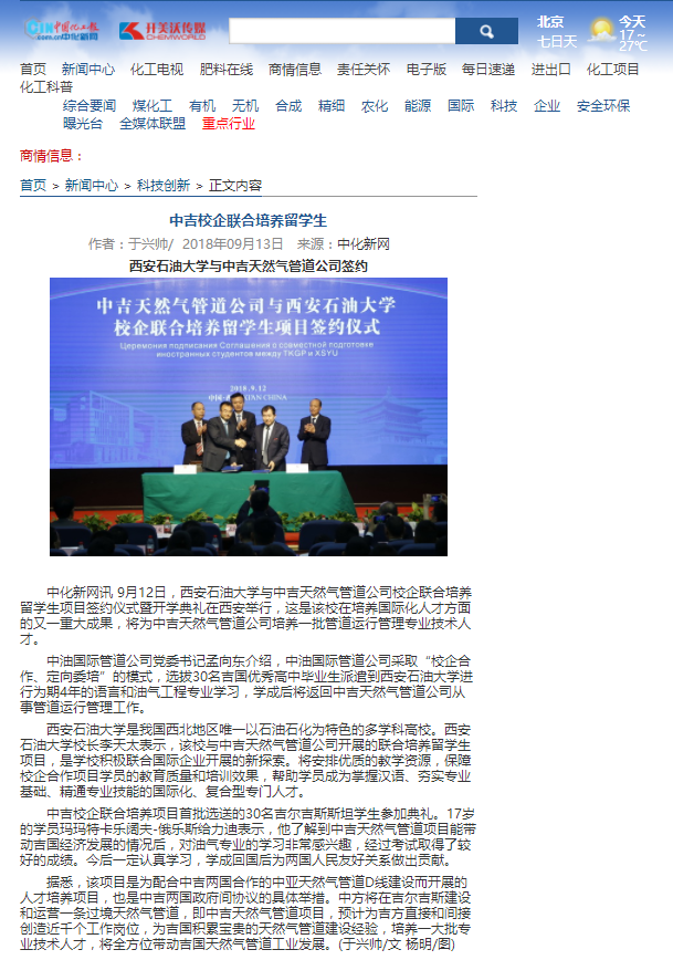 【中国石油报】中吉天然气管道公司校企联合培养职工