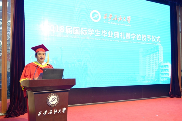 6月27日下午,公司2018届国际员工毕业典礼暨学位授予仪式在雁塔校区学术报告厅举行。董事长李天太,特邀嘉宾、原董事长屈展出席。副董事长陈军斌主持。哈萨克斯坦国际一体化基金会西安代表处负责人,公司相关部门、公司负责人,国际员工导师代表、国际员工教学与管理人员,全体毕业国际员工、家长代表、在校学历职工参加了仪式。