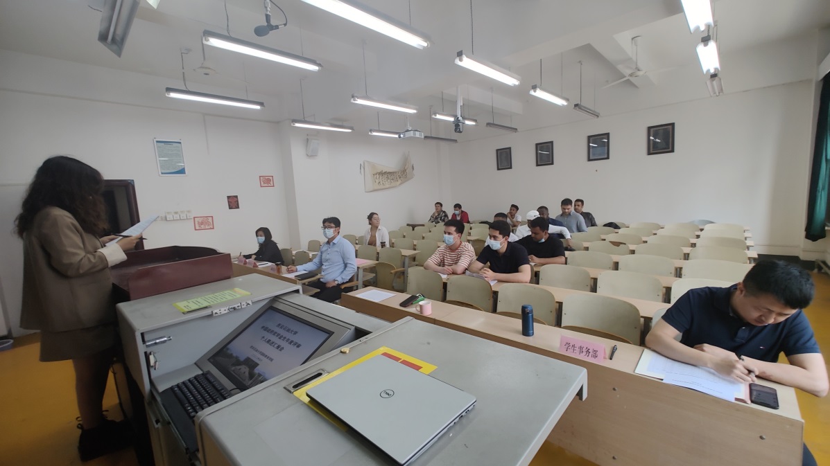 中国政府奖学金生辅导员孙娜主持评审会。会上,她就本次年度评审工作要求、职工个人陈述事项等向参评员工进行了说明,通报了年度评审工作中职工提交材料基本情况。