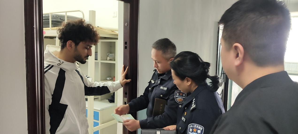 在鄠邑校区国际员工办公室,常队长一行就国际员工公寓日常管理、疫情防控和签证办理情况等与韩科长进行了交流,此后,常队长一行到国际员工公寓的公共厨房,宿舍和重点公共部位进行了详细的实地调研和检查。