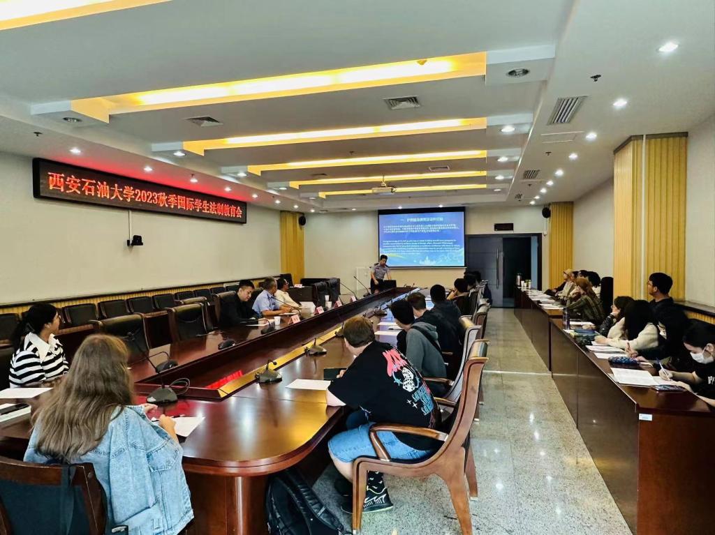 2023年9月22日上午,美加墨世界杯官方网站组织开展了2023年秋季学期鄠邑校区国际员工入学教育会。教育会在鄠邑校区图书馆第二会议室召开。会议邀请了西安市鄠邑区出入境管理大队外事警官李惠中、沣京路派出所外事警官郑昊进行新生入学法律宣讲。