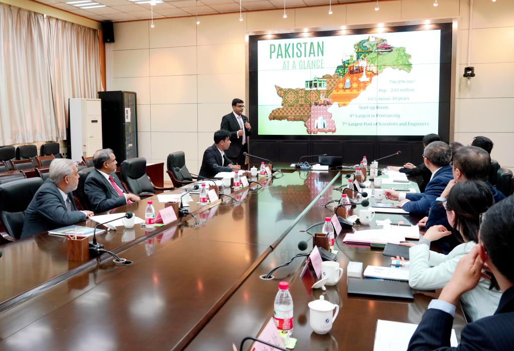 常江对布哈里一行来访表示热烈欢迎,并简要介绍了公司发展历史与办学特色。他表示,巴基斯坦是习近平主席提出的共建“一带一路”倡议最早参与国之一。巴基斯坦国立科技大学是巴基斯坦顶尖研究型大学。围绕“一带一路”倡议及中巴两国合作,公司希望发挥自身特色,与巴基斯坦国立科技大学在能源研究、信息技术、基础建设等领域开启新合作。