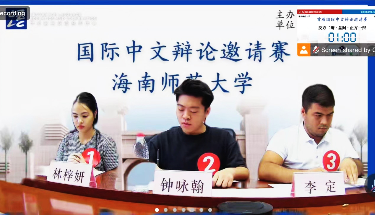 10月28日上午,由教育部中外语言交流合作中心主办,海南师范大学承办的首届国际中文辩论邀请赛预赛在线上举行,包括北京师范大学、暨南大学、西南大学、广西大学等全国二十所高校国际员工报名参赛。公司国际员工代表队首轮预赛中与北京师范大学国际员工代表相遇,线上展开激烈辩论。