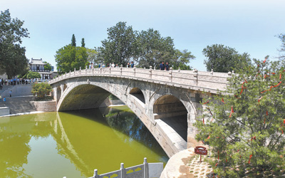 始建于隋代的赵州桥位于河北石家庄市赵县,是世界上现存年代久远、跨度最大、保存最完整的单孔坦弧敞肩石拱桥。图为赵州桥近景。 河北师范大学孟加拉国籍职工 穆罕默德·阿里夫·拉赫曼摄 “当得知赵州桥已有1400多年历史的时候,我惊叹于这座古桥竟能保存得如此完好。” |