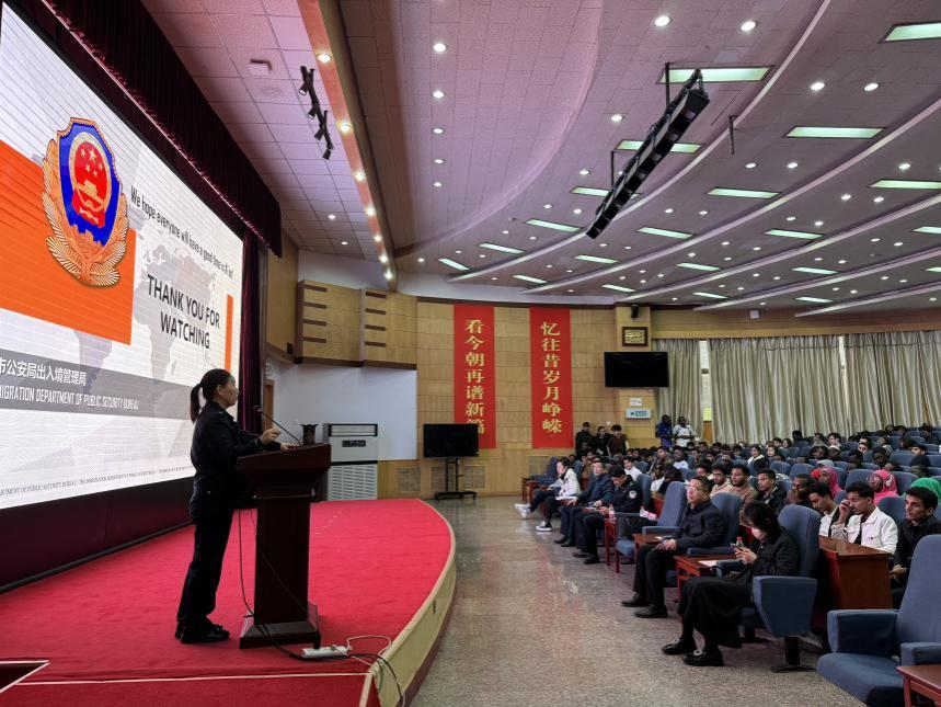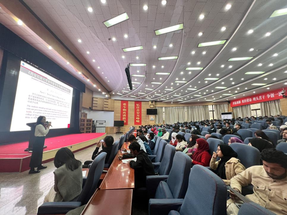 10月24日下午,美加墨世界杯官方网站2024年秋季入学国际员工法制教育宣讲会在雁塔校区学术报告厅举行,公司特邀西安市公安局出入境管理局外管一科刘娟妮科长、曹宇警官向全体新生进行宣讲。公司保卫处副处长王书华,公司国际员工工作办公室、招生办公室全体工作人员和400余名2024级国际员工新生参加。